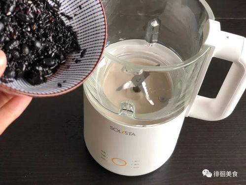 3. 榨汁:将浸泡好的芝麻和黄豆放入榨汁机中,加入适量的清水,启动榨汁机,将芝麻和黄豆榨成豆浆。